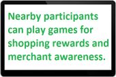 SHOPPING Our web-enabled TV monitors react to the contents of nearby peoples' wireless profiles and render related content and community-specific messages. Our software intelligently matches the interests of nearby shoppers with offers from local merchants. For example, if female shoppers are interested in shoes, a relevant shoe offer may appear and direct them to the shoe store. These responsive monitors react in real-time as people pass by.