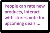 VOTE FOR UPCOMING DEALS Allows shoppers to select next week's deal interactively. A choice of future offers is provided by a merchant and shoppers are asked to pick their favorite deal. A coupon for the selected deal will be sent to their cell phone when the deal is finally ratified. Voting results are displayed immediately to allow others to try to alter the deal.